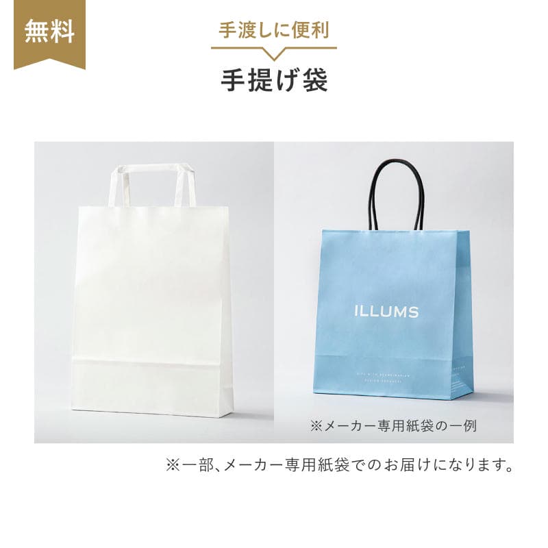商品サイズに適したお手渡し用の紙袋を、無料でおつけできます。ご希望の方は、購入画面内にて、手提げ袋「希望」をご選択ください。