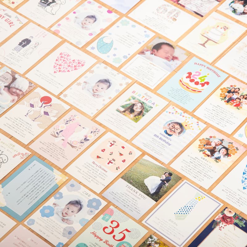 そのままご利用いただける定型カードや写真入りデザインも豊富です。