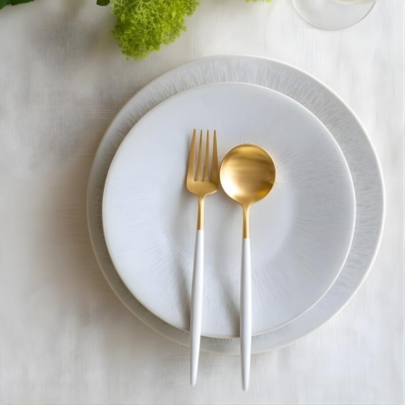 高級感のあるゴールドと清楚なホワイトの組み合わせが、食事のひとときを華やかに演出します。