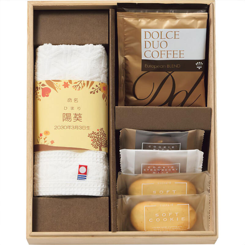 今治産タオルとクッキー、ドリップコーヒーの贅沢なセット。