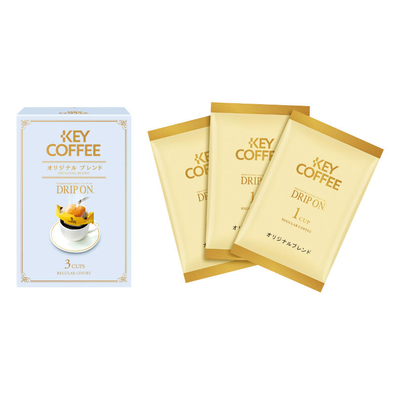 挽きたての香りと格別なおいしさをお届けするプレミアムドリップコーヒー「ドリップ オン」。使いやすく、ちょっとした贈り物、記念品や景品へのご利用にも便利です。