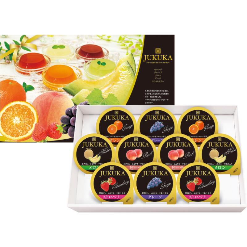 【商品内容】熟果ゼリー(オレンジ・グレープ・メロン・ピーチ・ストロベリー)52g×各2※包装済