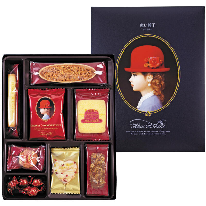 【商品内容】ホワイトボール(アップル風味)×5、チョコクランチ×3、(ナッツベリーハート・バニラアーモンド・ラングドシャロール・ストロベリークッキー・キャラメルショコラサンド・レッドハット)各2
