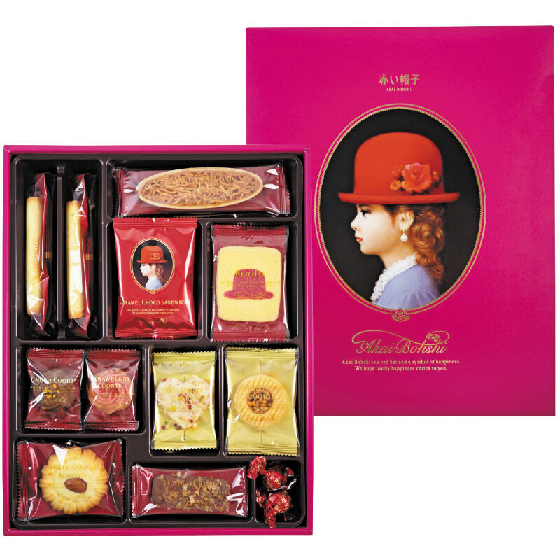 【商品内容】ホワイトボール(アップル風味)×5、ラングドシャロール×4、(ナッツベリーハート・バニラアーモンド・チョコクランチ・フロランタンクッキー)各3、(ストロベリークッキー・チョコクッキー・キャラメルショコラサンド・レッドハット・ホワイトチョコアーモンド)各2