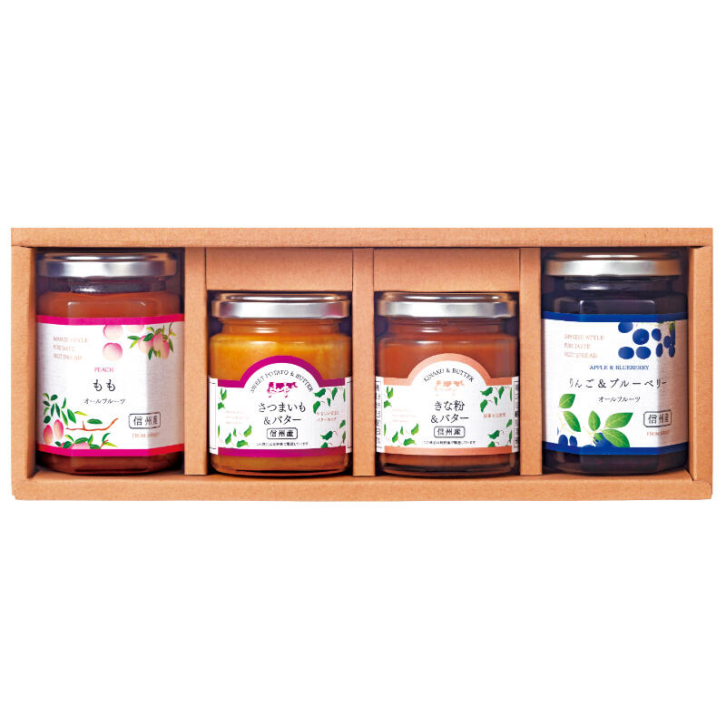 【商品内容】(ももスプレッド・りんご&ブルーベリースプレッド)各140g、(さつまいも&バターペースト・きな粉&バターペースト)各110g