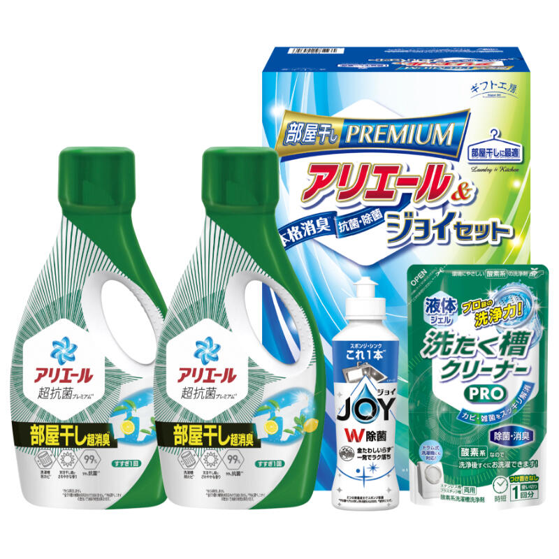 【商品内容】アリエールジェル部屋干し超消臭700g×2、除菌ジョイ170ml、液体洗たく槽クリーナーPRO200g