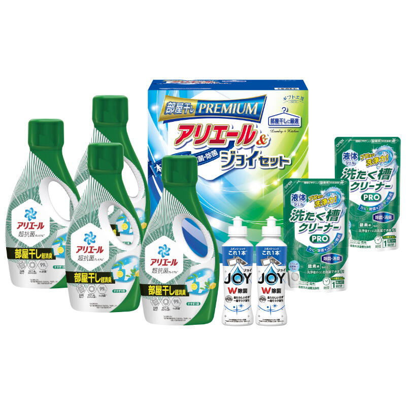 優れた本格消臭で部屋干しに最適なアリエールとダブル除菌の食器洗剤ジョイが入ったランドリー&キッチンセットです。