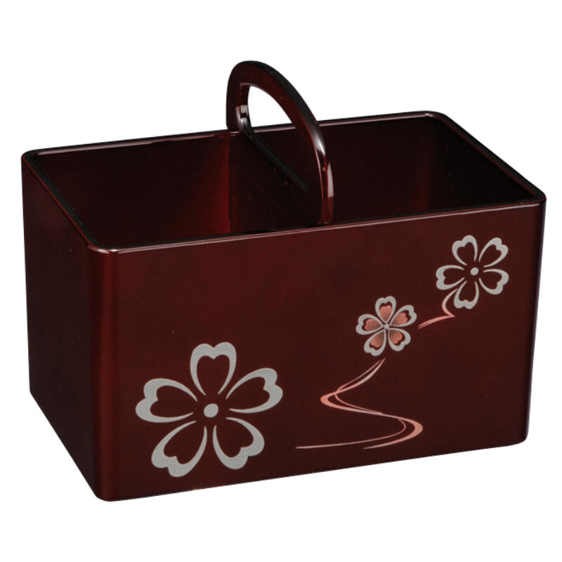 透明感のある春慶塗りのベースに現代蒔絵と盛絵技法にて鉄線の柄を施しました。