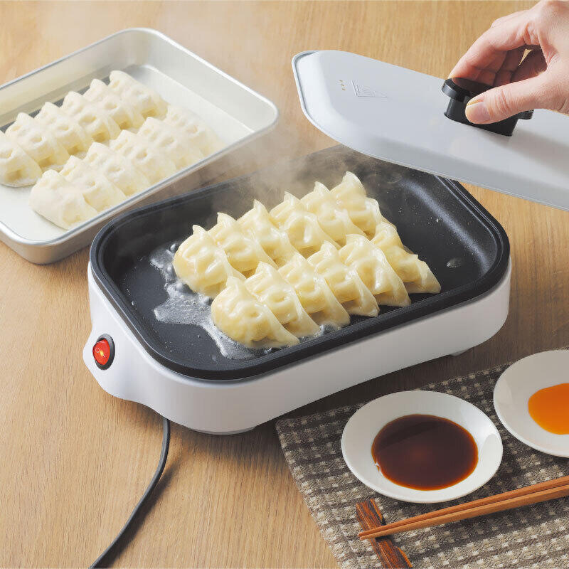 食卓で手軽に楽しめる、ふた付きコンパクトホットプレートです。