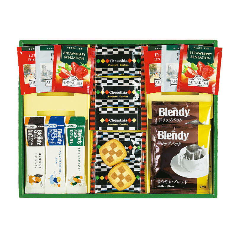 【商品内容】チェスティアクッキー×4・AGFブレンディコーヒー(ドリップ式)7g×2・紅茶(アールグレイ・ブレックファースト・ストロベリー)2g×各2・AGFブレンディスティック(エスプレッソオレ5.8g・カフェオレカロリーハーフ5.4g・カフェオレ8.2g)