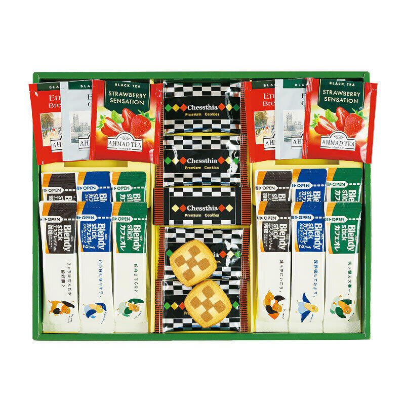 【商品内容】チェスティアクッキー×8・紅茶(アールグレイ・ブレックファースト・ストロベリー)2g×各2・AGFブレンディスティック(エスプレッソオレ5.8g・カフェオレカロリーハーフ5.4g・カフェオレ8.2g)各4