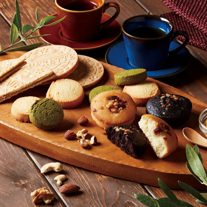 【商品内容】ごろっとナッツフィナンシェ(バニラ・ショコラ)各2・ゴーフレット(チョコ)×4・ほろほろクッキー(チーズ・抹茶)各10