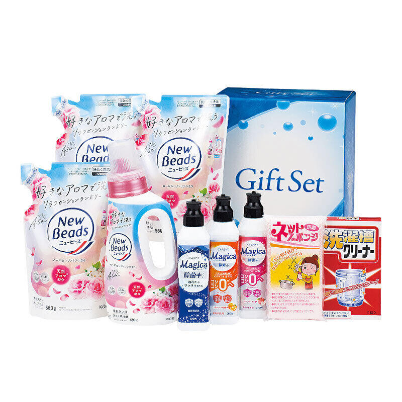 【商品内容】ニュービーズローズ&マグノリアの香り(本体690g・詰替560g×3)・CHARMY Magica除菌+220ml・CHARMY Magica酵素+(オレンジの香り・フレッシュピーチの香り)各220ml・洗濯槽クリーナー(5錠箱入)・ネットスポンジ