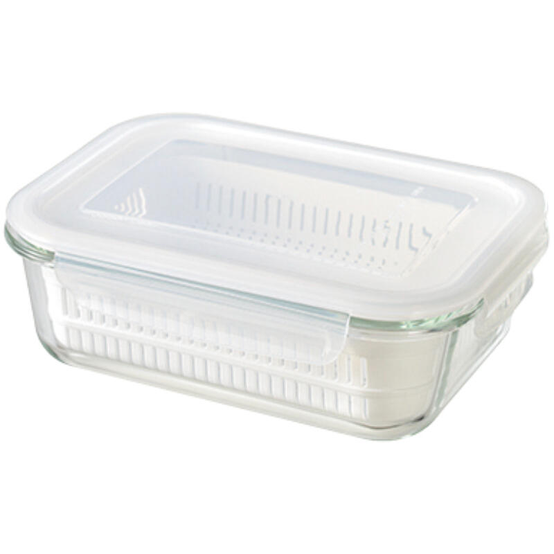 【材質】本体:耐熱ガラス・蓋:ポリプロピレン(-20℃〜120℃)・蓋パッキン:シリコーンゴム・ざる:ポリプロピレン(-20℃〜140℃)