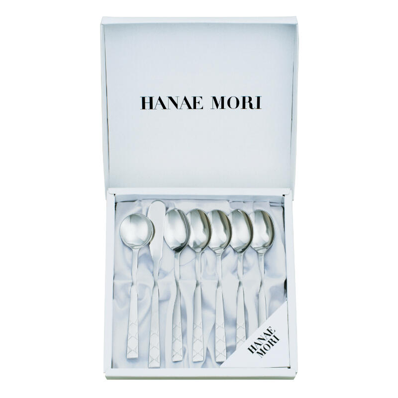 コーヒースプーン5本に加え、バターナイフとシュガースプーンが揃った7点セット。