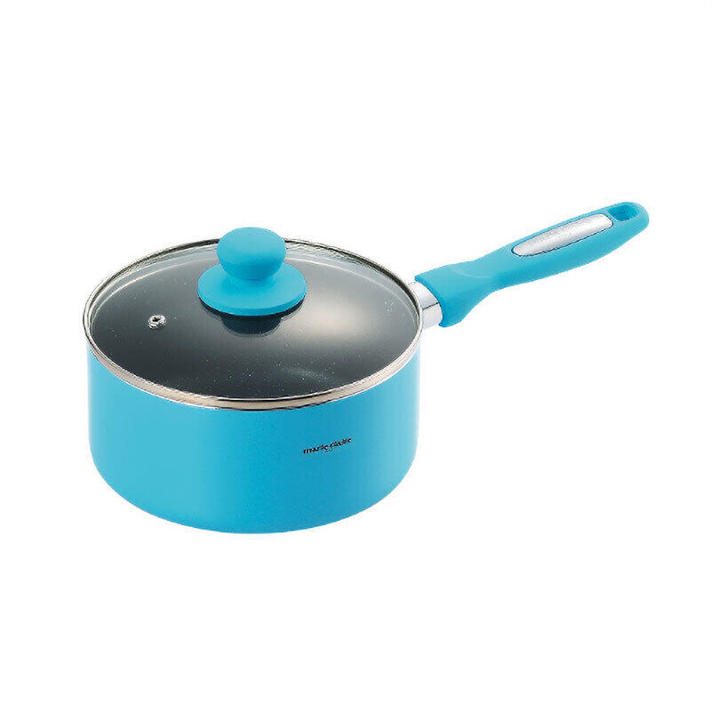 内面はマーブルフッ素樹脂加工でお手入れ簡単。アルミ製なので軽量で調理の負担になりにくい。ツマミ・ハンドル部はシリコン樹脂塗装で、すべりにくく手になじみます。