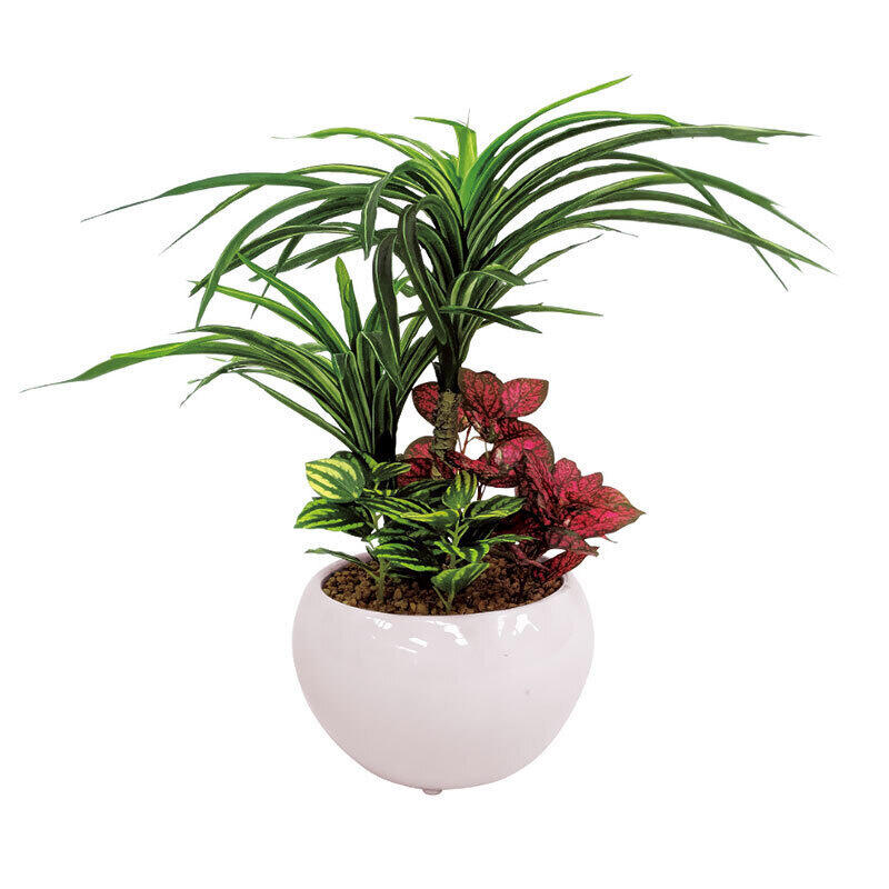 置くだけで気分はトロピカル。青年の木と呼ばれ成長・発展の象徴のユッカが主役の寄せ植えフェイクグリーン。