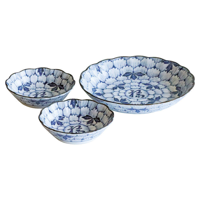 縁起の良い「福」をあしらった小鉢と深皿のセット。