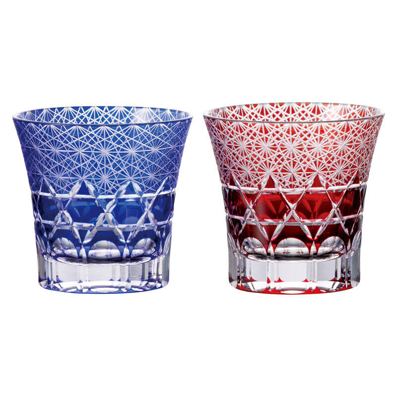 菊繋ぎのダイヤカットが美しく映える、華やかで高級感のあるオールドグラスのペアセット。