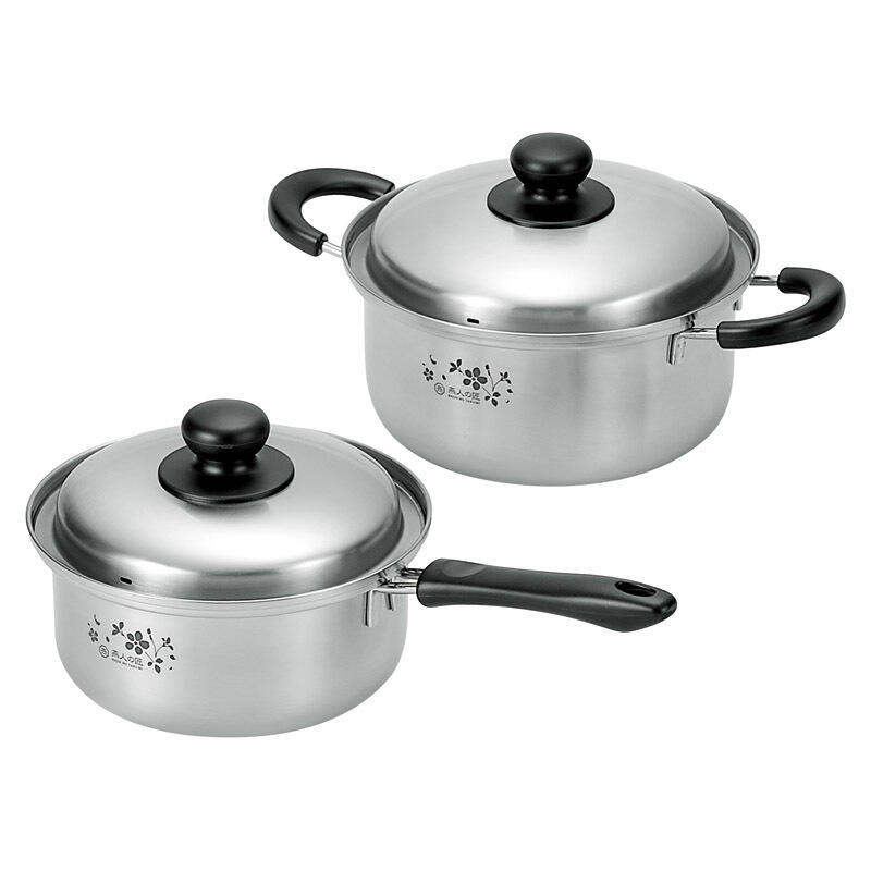 両手鍋20cmと片手鍋18cmのセット。