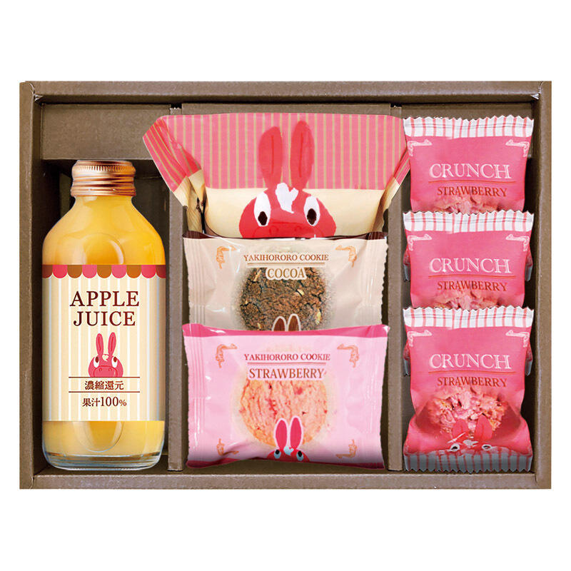 【セット内容】チョコクランチ(ストロベリー)×3、アップルジュース(180ml)・焼きドーナツ(ストロベリー)・焼きほろろクッキー(ココア・ストロベリー)×各1