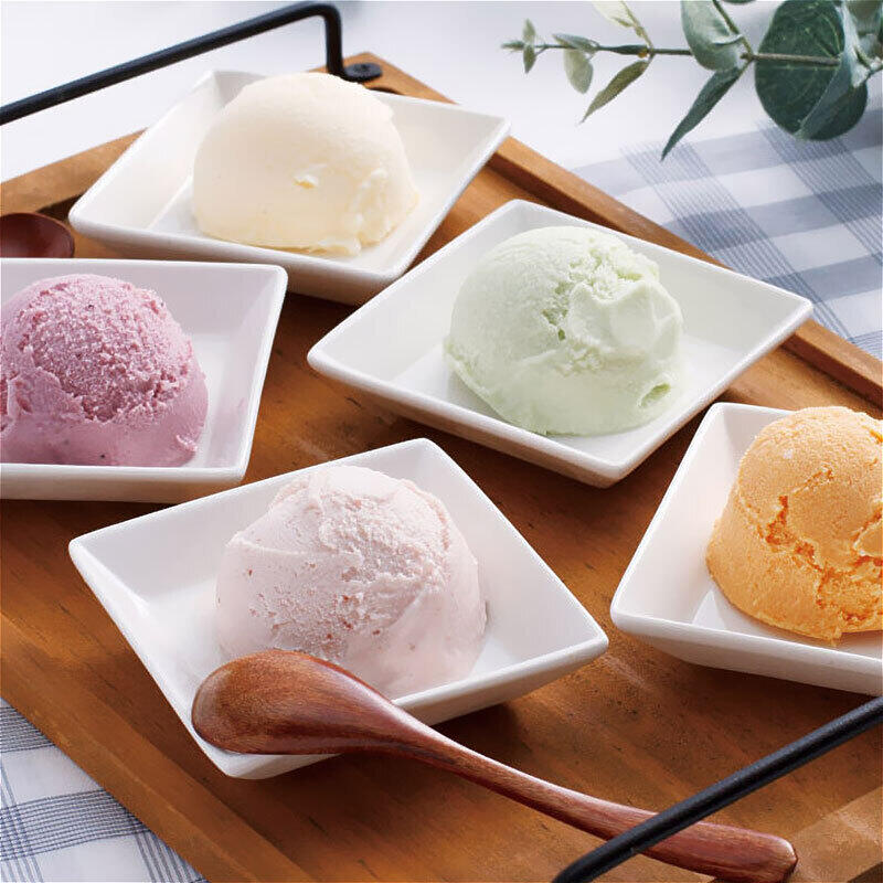 北海道牛乳を使用した5種のアイスクリーム。人気のバニラに赤肉・青肉メロンやハスカップ、ストロベリーの4種のフルーツの味も楽しめます。