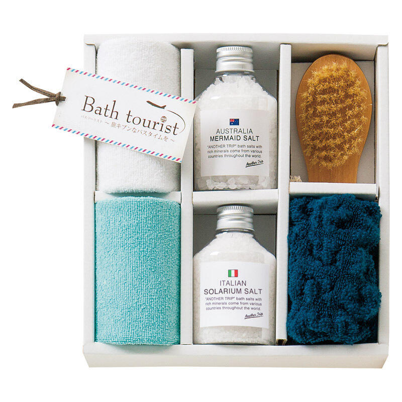 【セット内容】マイクロファイバークロス(中国)(25×25cm)×2、バスソルト(イタリアン)海塩(180g)・バスソルト(オーストラリア)海塩(175g)・ふわもこウォッシュタオル(中国)(22×22cm)・ブラシ(中国)×各1