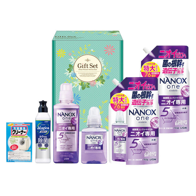 ニオイ・汚れ・衣類の色変化までこれ一本で絶つライオンナノックスoneを主体としたギフトセット。