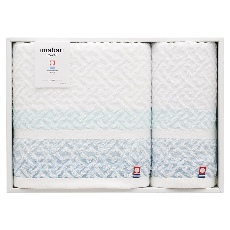 伝統的な紋様をグラデーションカラーで美しく表現したコンパクトバスタオルとウォッシュタオルのギフトセットです。