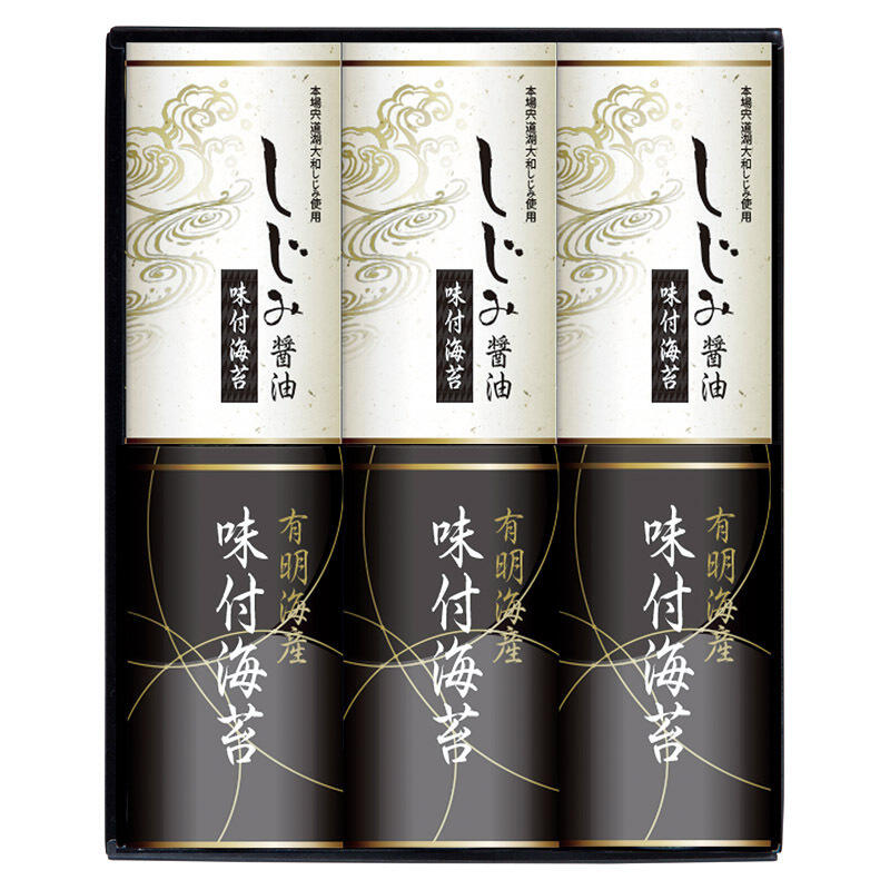 有明海産の海苔としじみ醤油味付のりを贅沢に詰め合わせたギフトセット。