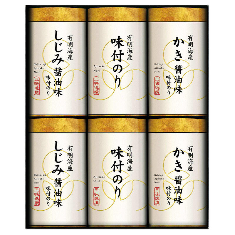 【セット内容】有明海産味付海苔・有明海産しじみ醤油味付海苔・有明海産かき醤油味付海苔(各8切16枚)×各2