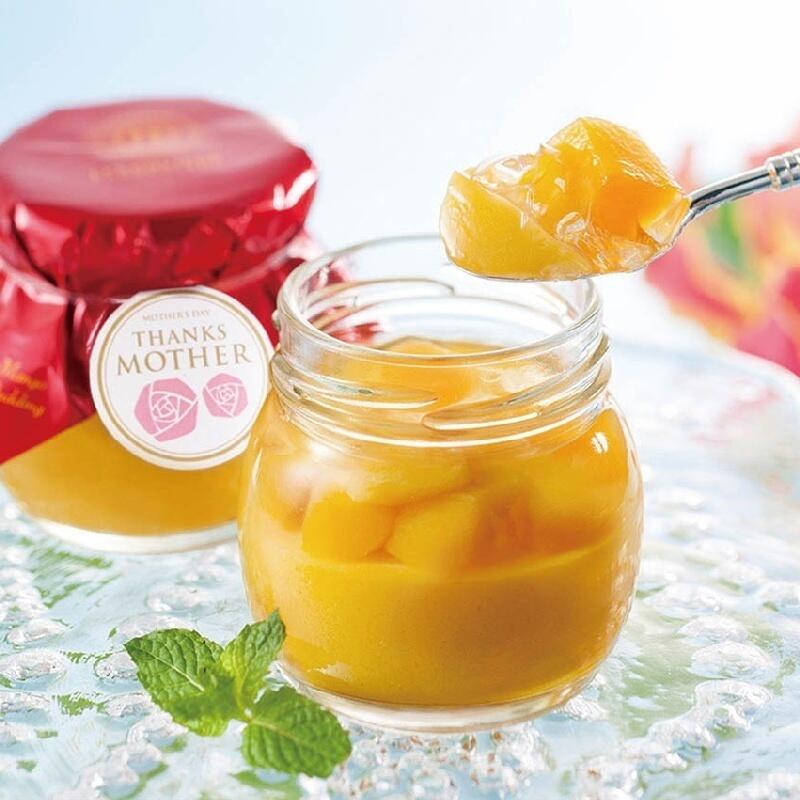 マンゴー果肉が贅沢に入ったスイーツ。あとくちの良い果肉入りのゼリーと、濃厚なマンゴープリンの二層仕立て。フランス国家最優秀職人章「M.O.F」受章の女性天才シェフ、アンドレ・ロジェのこだわりの一品です。