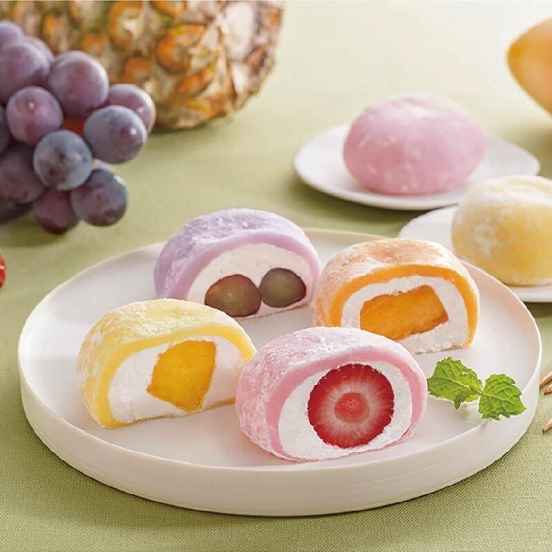 みずみずしいフルーツの果肉とクリームを柔らかなお餅で閉じ込めたカラフルなフルーツ大福です。母の日のメッセージをつけてお届けいたします。
