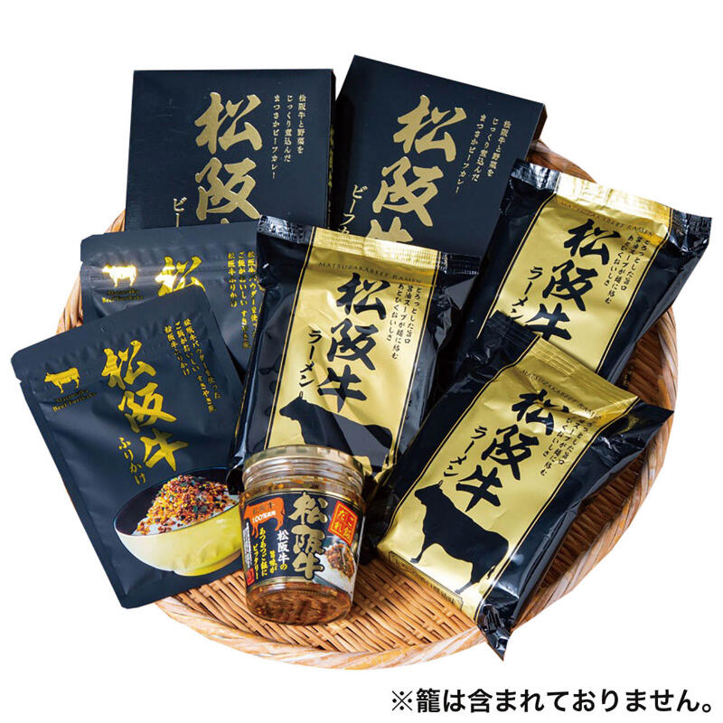 現品・内容・サイズ・材質: 松阪牛ラーメン91g×3、松阪牛ふりかけ30g×2、松坂牛ビーフカレー180g(パウチ)×2、松阪牛ご飯だれ200g×1