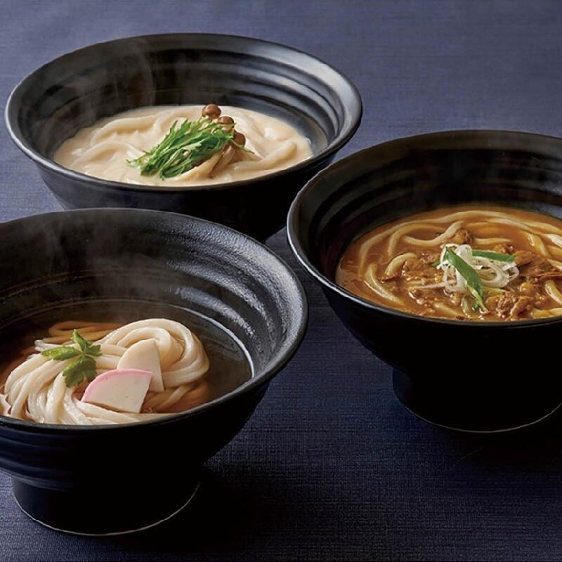 現品・内容・サイズ・材質: 乾麺(3人前)270g×2、かけつゆ(希釈)30g×4、カレーのお出汁250g、クリームのお出汁250g