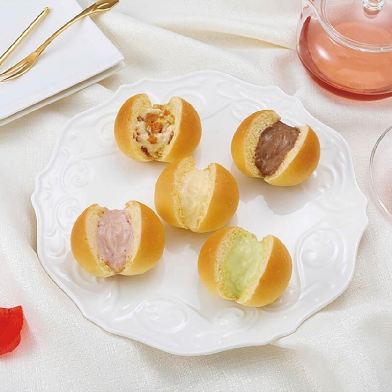 しっとりふんわり柔らかい生地と、とろけるクリームの味わいをそのままに、可愛らしいミニサイズでご用意しました。カスタードやチョコレートの八天堂定番の味をはじめ、「オレンジ」などのバリエーションをお楽しみいただけます。
