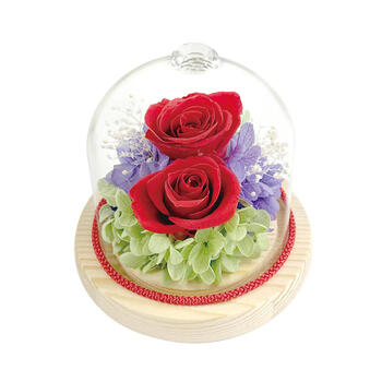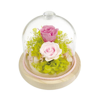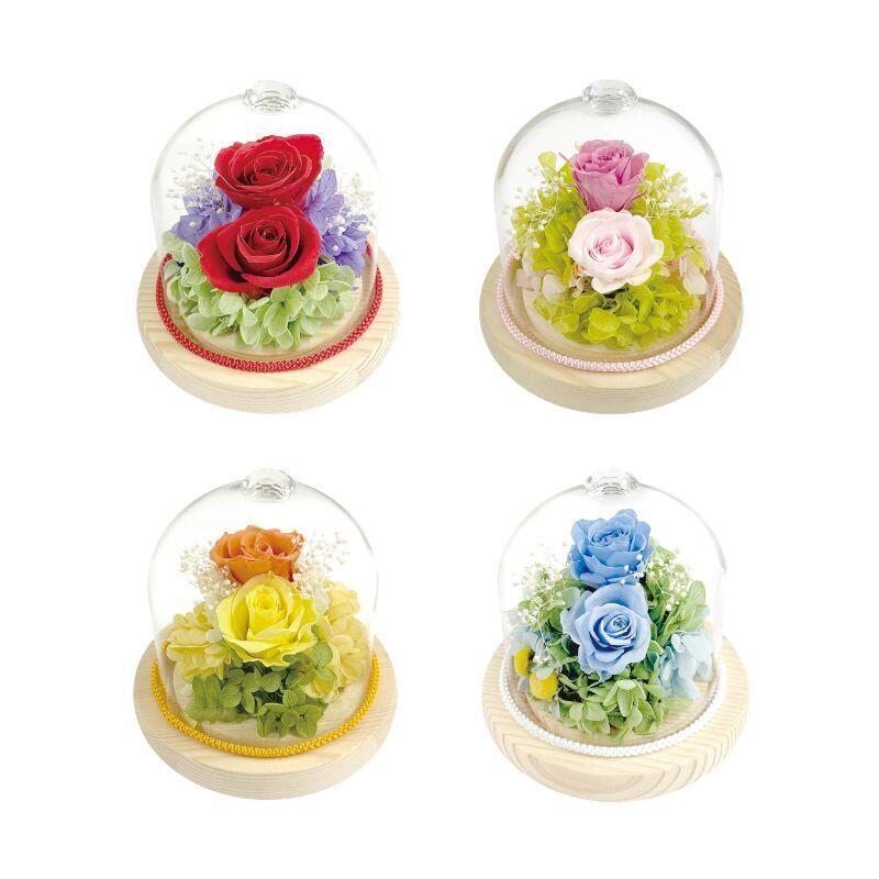 ラグジュアリーなガラスカットを冠に付けたガラスドームは見た目に高級感があるだけでなく保護性能も高いため、プリザーブドフラワーをさらに長期間お花を美しい状態に保つことが可能です。