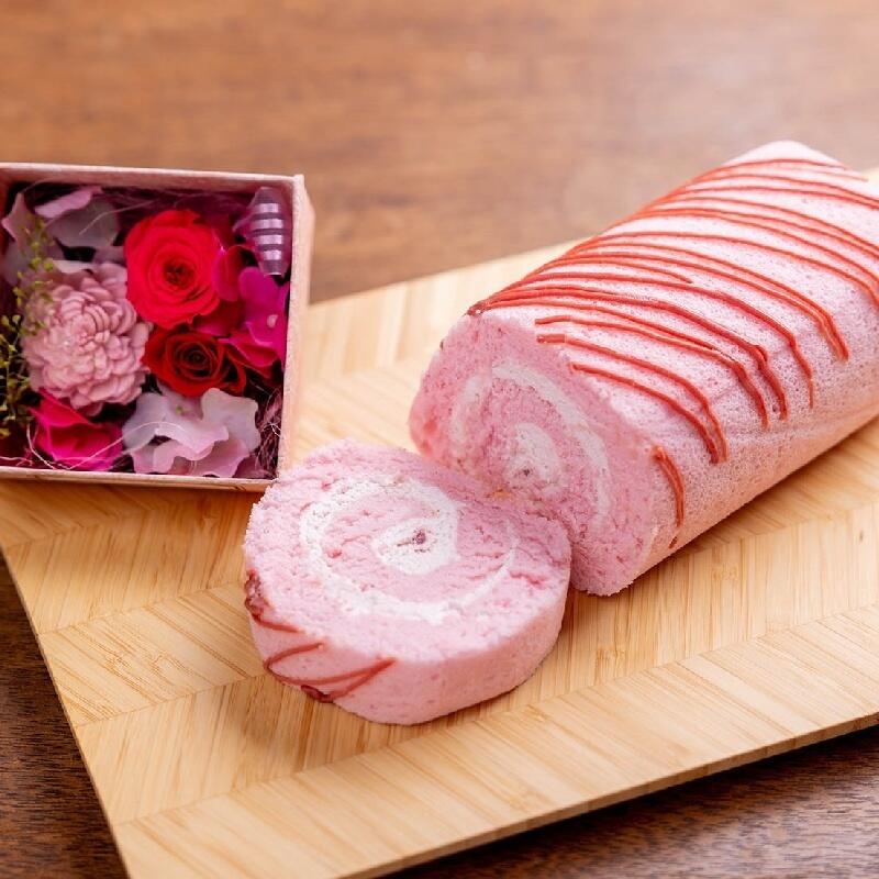 甘みのある完熟いちごロールと、長く楽しめるプリザーブドフラワーを組み合わせたセットです。