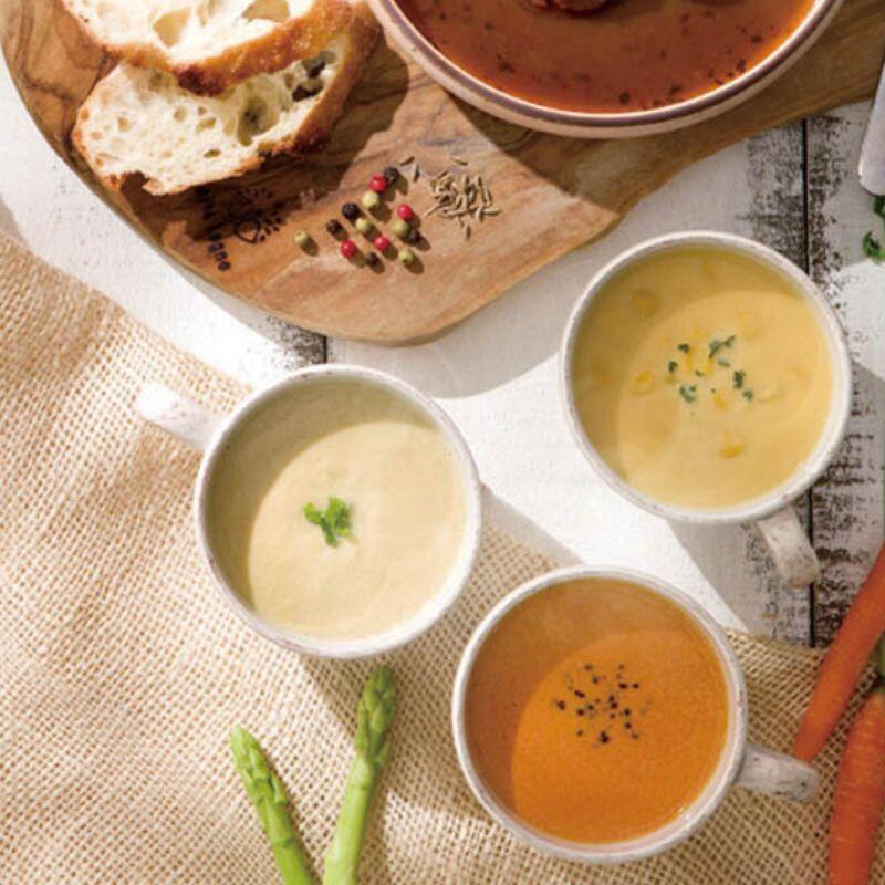 北海道産とうもろこし、アスパラガス、人参、玉ねぎを使用した、濃厚でコクのある贅沢なポタージュの詰合せです。