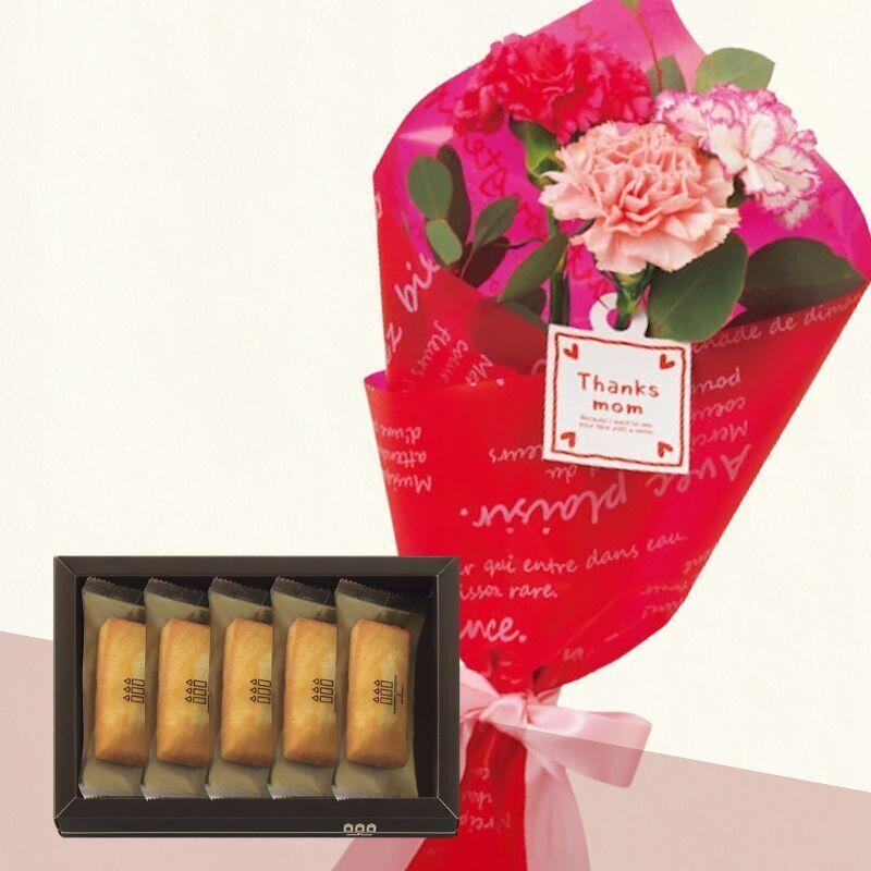 2種類の厳選したアーモンドと発酵バターの重厚な香りが楽しめるアンリ・シャルパンティエの代表商品の「フィナンシェ」と花束をセットにしました。