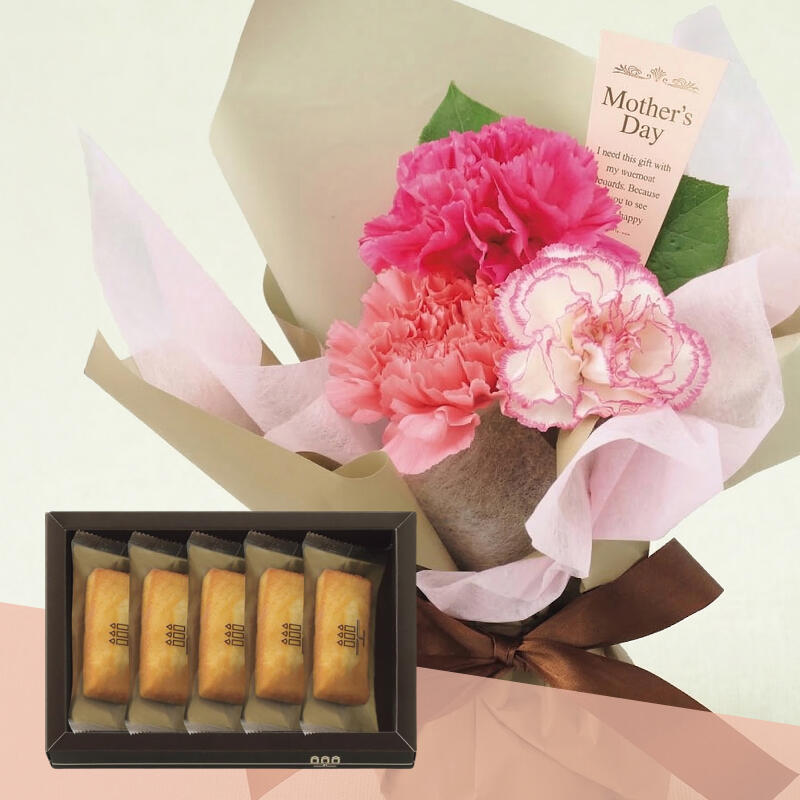 カーネーション3、レモンリーフ●お手入れのしおり付●フィナンシェ×5