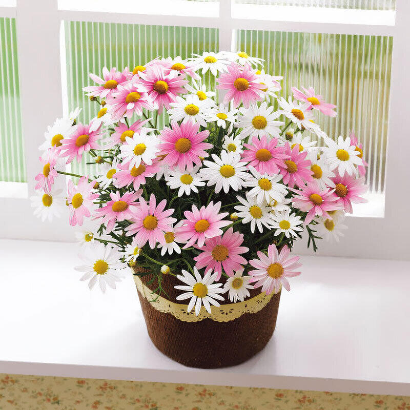花色が変化する愛らしく清楚なマーガレットです。花が次々と咲き、こんもりした姿をお楽しみいただけます。花色が白、淡い桃、濃い桃、白へと徐々に変化していくので、1株で同時に色々な花色を楽しめ、グラデーションもとてもきれいです。