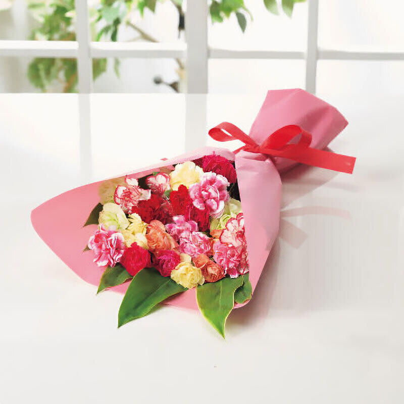 7色の鮮やかなカーネーションが、お部屋をパッと明るく彩ります。