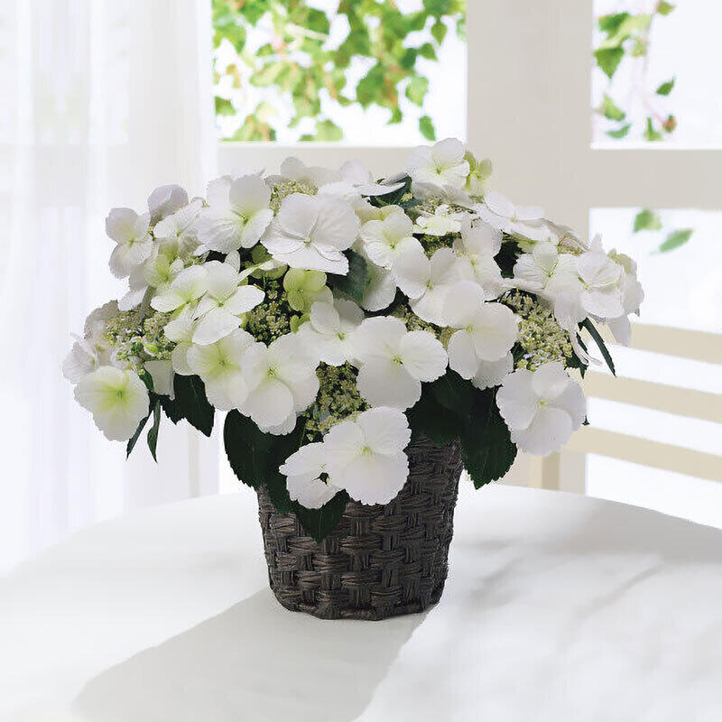 フラワー・オブ・ザ・イヤー(2019-2020)を受賞のアジサイ。全ての側芽から花が咲く、アジサイの常識を覆す画期的な品種。咲き始めはライムグリーン、だんだんとホワイトへ、そして淡いピンクへ色づきます。