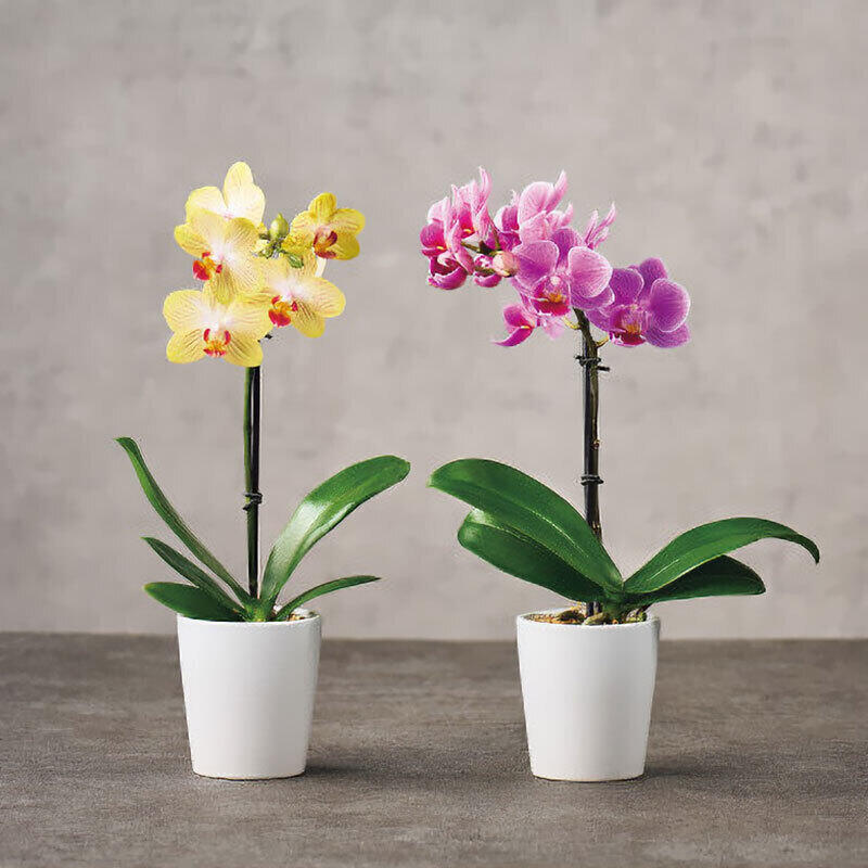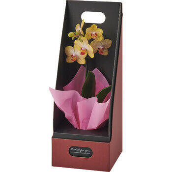 マイクロ胡蝶蘭1本立ち(2.5号)、ギフトボックス(ギフトボックス色:ワインレッド)●お手入れのしおり付