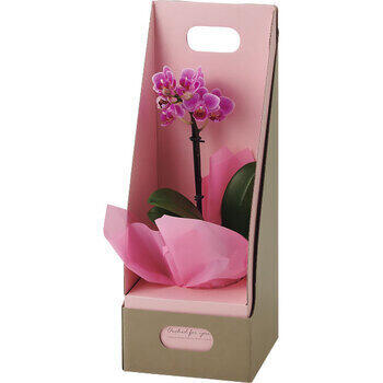 やさしいピンクのボックスに包まれた、愛らしい小さな胡蝶蘭。