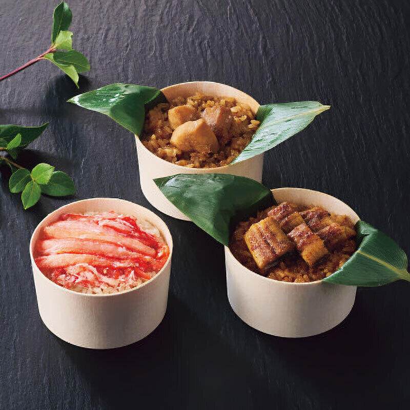 レンジでチンするだけ。ホカホカのおこわに舌鼓。ふぐ、うなぎ、かにの3つの味のおこわをお届けします。食べたい分だけレンジで温められて便利です。