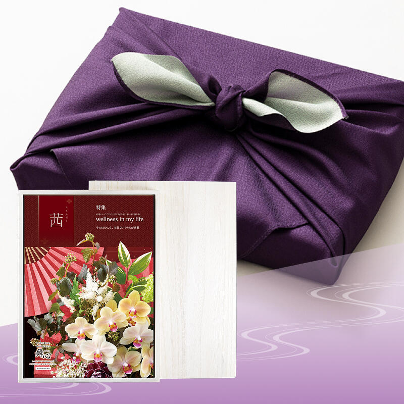 「感謝」を添えて、お世話になった方々へ「選ぶ楽しみ」をお届けする総合カタログギフト。あらゆるギフトシーンに対応する多彩な商品ラインナップが特長で、贈り先様の年齢や性別、家族構成に関わらず喜んで頂ける贈り物です。木箱にお入れして、濃紫と鶯の風呂敷でお包みすることで、弔事にぴったりの落ち着いた高級感ある贈り物としでご利用いただけます。
