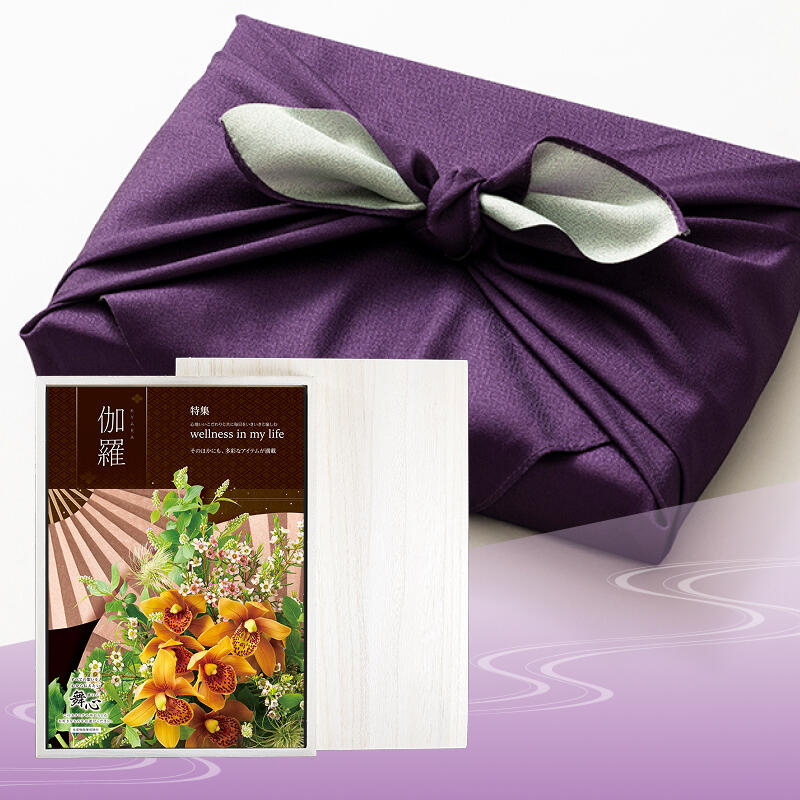 「感謝」を添えて、お世話になった方々へ「選ぶ楽しみ」をお届けする総合カタログギフト。あらゆるギフトシーンに対応する多彩な商品ラインナップが特長で、贈り先様の年齢や性別、家族構成に関わらず喜んで頂ける贈り物です。木箱にお入れして、濃紫と鶯の風呂敷でお包みすることで、弔事にぴったりの落ち着いた高級感ある贈り物としでご利用いただけます。