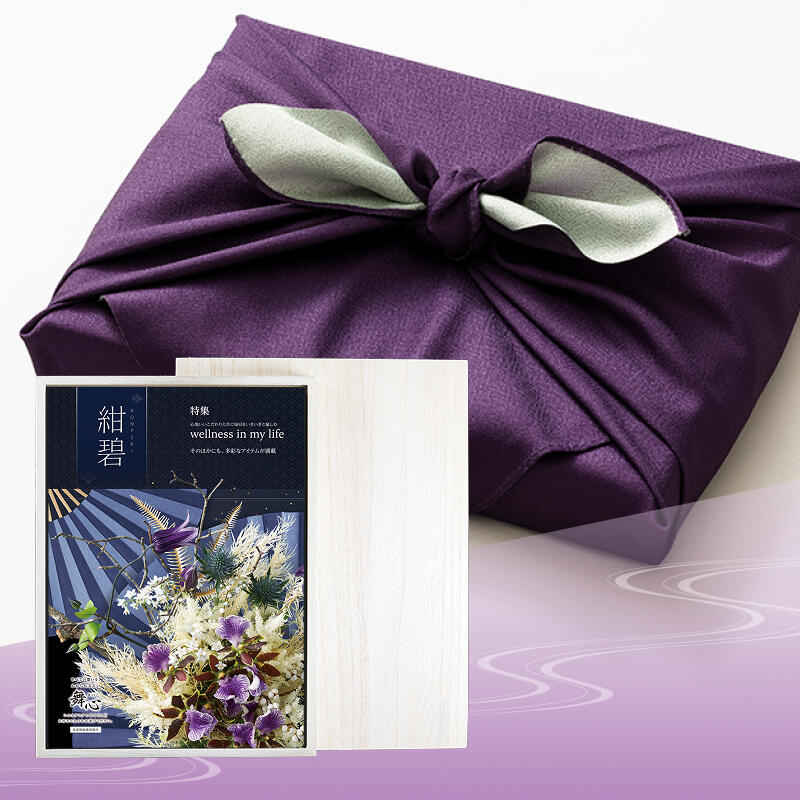 「感謝」を添えて、お世話になった方々へ「選ぶ楽しみ」をお届けする総合カタログギフト。あらゆるギフトシーンに対応する多彩な商品ラインナップが特長で、贈り先様の年齢や性別、家族構成に関わらず喜んで頂ける贈り物です。木箱にお入れして、濃紫と鶯の風呂敷でお包みすることで、弔事にぴったりの落ち着いた高級感ある贈り物としでご利用いただけます。